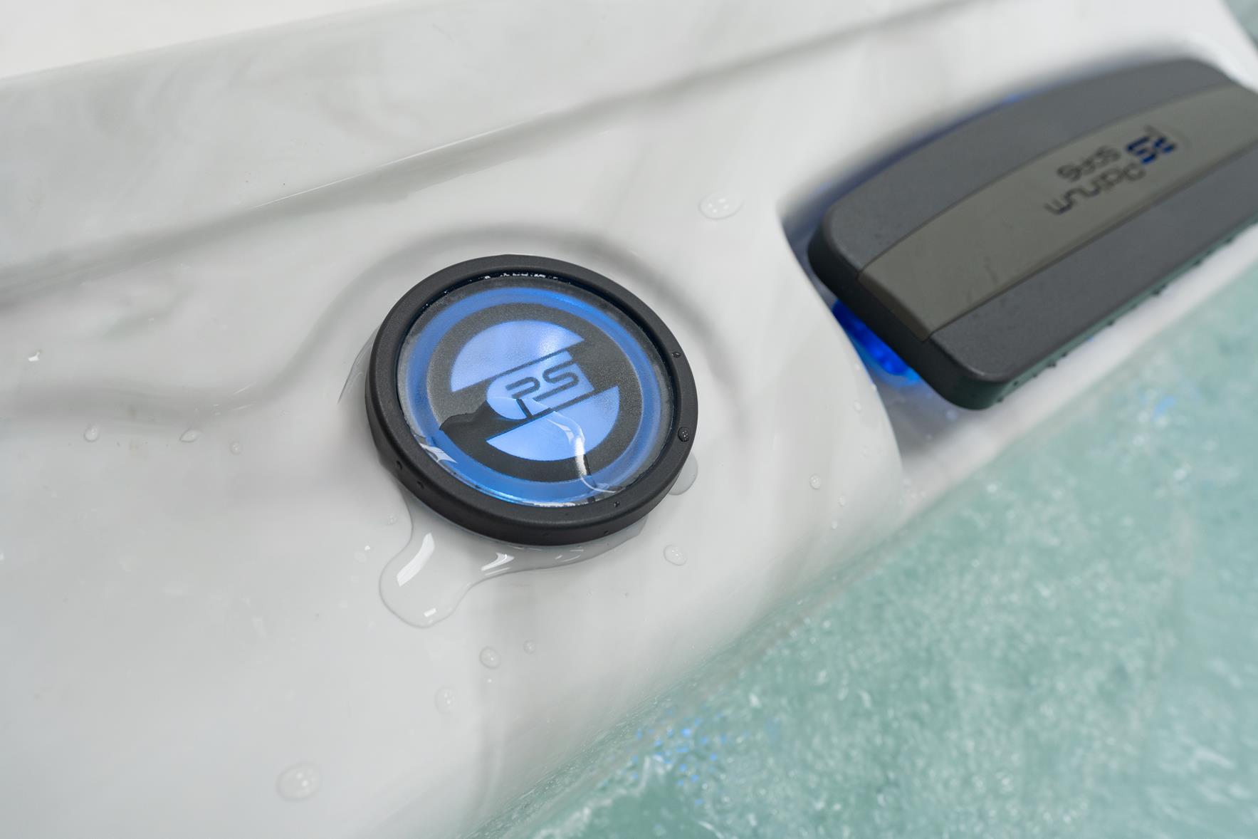 Der Whirlpool Maximus verfügt über alle Merkmale der Platinum Premium Range, einschließlich einer integriertes Bluetooth-Soundsystem und hochwertige LED-Beleuchtung in die Eckpaneele integriert, sowie Unterwasser-Flutlicht und Wasserlinienbeleuchtung.