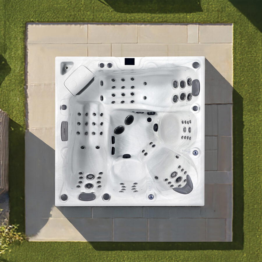 Der Onyx Whirlpool hat eine etwas andere Form als die meisten Whirlpools der Platinum Spas Premium-Reihe. Er hat modernere und schärfere Ecken und ist damit eine gute Wahl für moderne Gärten.